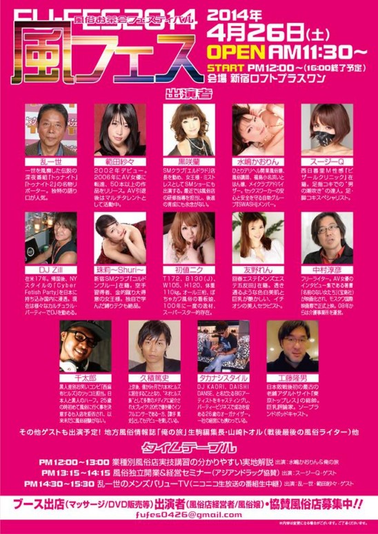 4月26日(土曜日)昼12時〜15時半まで。風俗フェスティバルIN歌舞伎町ロフトプラスワン、略して『風フェス』を開催します。
