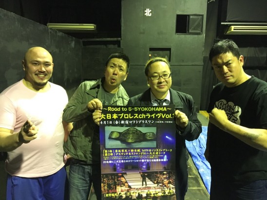 そんな中、大日本と選手の魅力をダイレクトに味わってもらうべくロフトプラスワンに進出しイベントを開催! 大会の前説で好評を博している“大日本の知恵袋”登坂栄児社長と、ロフトプラスワンでは「ザ・グレート・サスケの大予言」主宰でお馴染みの鈴木健.txtによる喋り出したら止まらないノンストップトーク(本当に“間”が一切ない)と、伊東竜二&岡林裕二の大日本二大王者に聞く公開インタビューの二本立てでお送りする。デスマッチ&ストロングBJ王者とのベルト姿によるスリーショット撮影会(抽選)をおこなうのは当イベントだけ!