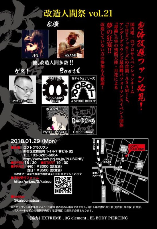 ※このイベントは都条例により18歳未満の方の入場はできません。当日入場の際に身分証(免許証、学生証、社員証、パスポートなど公共機関が発行する証明書)の提示が必要となります。