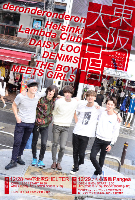 SCHEDULE 2015 12 28 Monday デロンとヘルシンキとデイジーとデニムスとボーイミーツの「東阪大合唱」東京編 OPEN 18:00 - START 18:30 Tweet deronderonderon Helsinki Lambda Club THE BOY MEETS GIRLS DAISY LOO DENIMS TICKETADV¥2500 / DOOR¥3000 【発売日】 10/17〜e+ Share