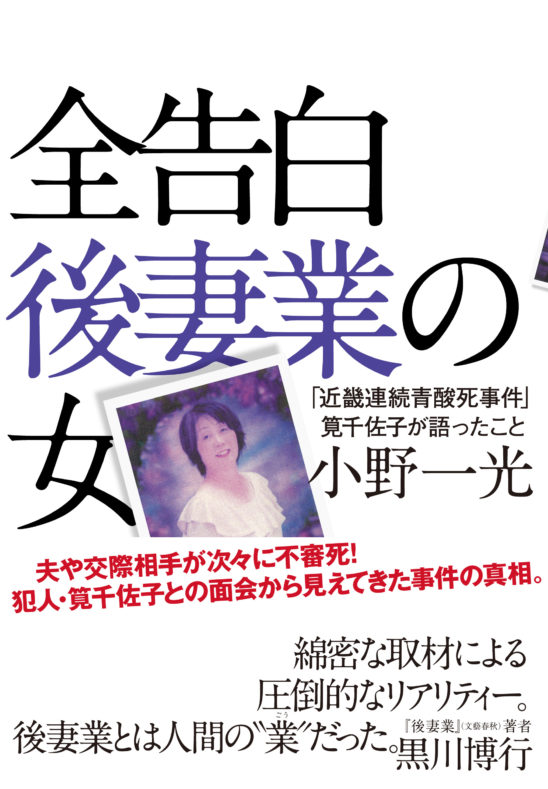 2015年京都で事件が発覚し、その後次々と被害者がいたことが分かった「後妻業青酸連続殺人事件」の容疑者筧千佐子を独自取材した本「全告白 後妻業の女」がこのほど発売された。