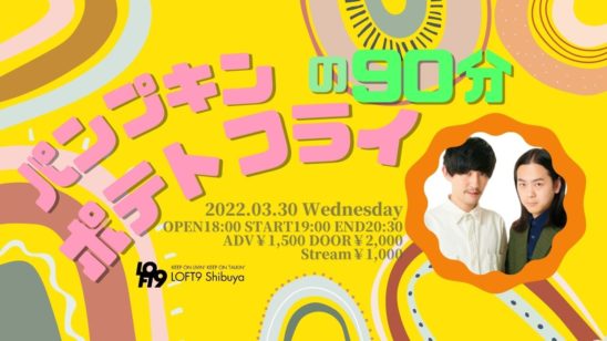 パンプキンポテトフライ(谷拓哉、山名大貴)がLOFT9 Shibuyaから届ける90分