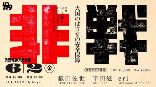 - 【入場料】高校生以下無料 / U23 1000円 / 大人2000円(飲食代別途必要)※当日券あり