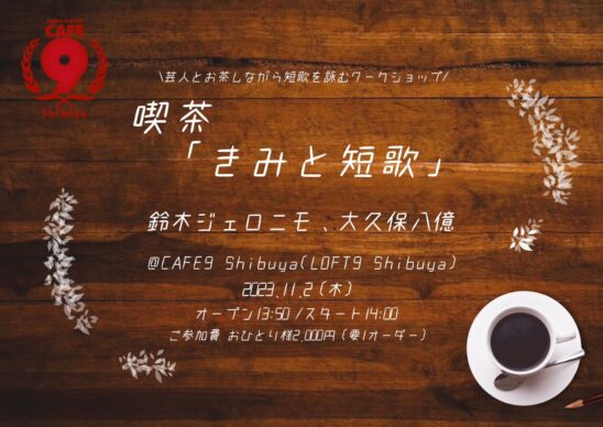 鈴木ジェロニモさん、大久保八億さんをお迎えして、短歌をつくるワークショップを開催致します!