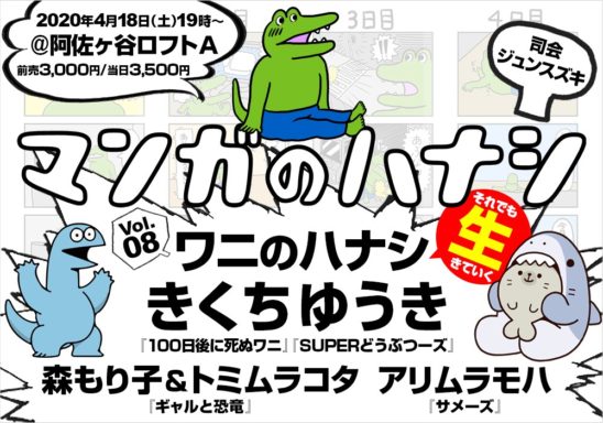 「【マンガのハナシ vol.8:ワニのハナシ】」は、現在、海外及び日本において新型コロナウィルス感染症の拡大を受け協議の延期とさせて頂くこととなりました。