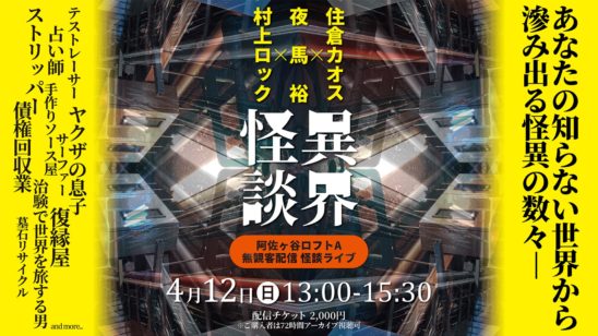 そんな特殊で特別な世界の怪談だけを、住倉カオス、村上ロック、夜馬裕の三人がディープに語ります。