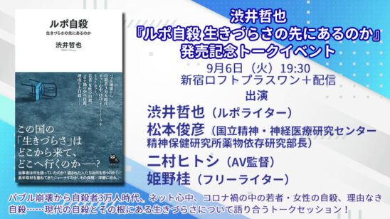 *会場で『ルポ自殺 : 生きづらさの先にあるのか』発売いたします。