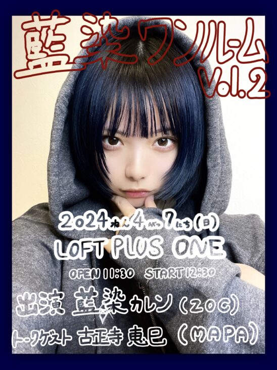 SCHEDULE 2024 04 07 Sunday DAY EVENT 藍染ワンルーム Vol.2 OPEN 11:30 - START 12:30 Tweet 【出演者】 藍染カレン(ZOC) 【ゲスト】 古正寺恵巳(MAPA) TICKET【チケット料金】 4000円 (1order別途) ※ZOC公式ファンクラブ「FC ZOC」 MAPA公式ファンクラブ「MADPARTY」会員限定にて限定発売 Share