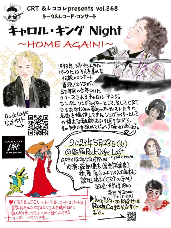■1973年、NYセントラル・パークに10万人を集めた伝説のコンサート音源/DVDが、50年目の今年、ついにリリースされるキャロル・キング。シンガー・ソングライターとして、そしてCRTでもおなじみの数々のアーティストたちに名曲を提供してきたソングライターとしての偉大な軌跡を振り返りながら、その魅力を改めてじっくり味わいましょう。