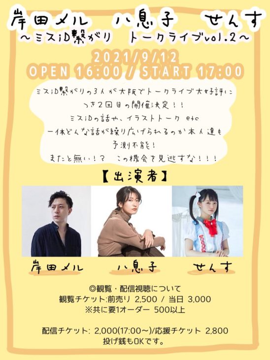 ミス iD繋がりの3人が大阪でトークライブ大好評につき2回目の開催決定!!