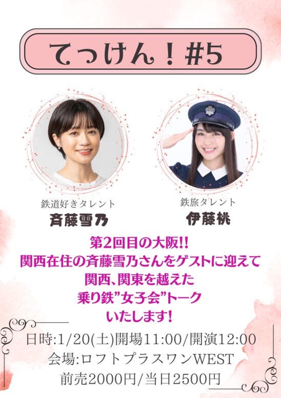 関西在住、メディアでも大活躍の鉄道好きタレント・斉藤雪乃さんがゲストにきてくださいます。