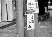 那覇に一人ぽつねんと残された私は、別に早く東京に帰った所で、用事があるわけでもなく、しばらくは那覇の一泊1500夕食300円泡盛一杯100円と言う「月光」と言うゲストハウスに居候を決め込んでいた。それは2月3日に行われた過疎と不況に悩む「名護市、市長選挙」に結構興味があって、4年前の「基地はいらない住民投票」で基地撤去派が大勝利をおさめた、その結果