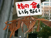▲俺たちロフトグループは小倉あやまれ友の会の旗を急遽「ブッシュあやまれ」の旗に変更(笑)