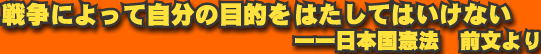 日本の平和憲法の前文に「戦争によって自分の目的を達成してはいけない、専制と従属の世界を変えなければならない」、その為に「戦争でなく非暴力で国際協調をやってゆく」(小田