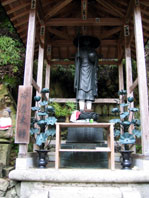 | 一番札所「霊山寺」。弘法大師空海はここで初めての解脱をされたというありがたいお堂前。ここで私の霊感が走った。 |