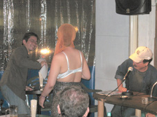 これには司会進行の北村ヂン、急行はあせってしまって、急遽この包丁妻さんのパーフォマンスを実力でやめさせる結果になってしまった。時勢がこんな「賭博はいいけどエロはダメ」というお上の強力な弾圧姿勢も蔓延していることだし、わたしは、包丁妻さんのフィニッシュは見ることが出来なかった。しかし、やはりここまで自己の体を張っての演技は、それがたとえエロであろうとも、その迫力も含め、やはり「感動」を呼ぶものであり、それは確かにテレビなんかにはでれることはないだろうが、私は断固彼女を当日の「優勝者」にした。