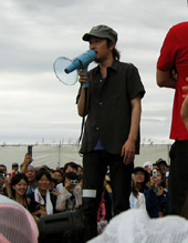 それでさ、東京に帰ってからホットスタッフのD氏に会ったので言ってやったんだ。「おい! Dよ! いい加減にせんか? あの雨なんとかしろよ! ちゃんと雨乞いの反対の、なんていうかわからないけど、ほら、てるてる坊主飾ったりする儀式やったのかよ〜!」。さすがにD氏キレまくって、「悠さん、そりゃ〜ないでしょ。雨で一番辛いのは俺たちスタッフなんすよ。文句言う前に、お疲れ様でしたとかなんとかねぎらいの言葉ないの?」って抗議され、わたしゃ、すかざす「すんません」って謝るしかなかったな(笑)。