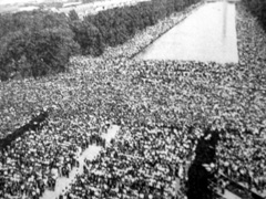 63年8月、ワシントンで行われた「反戦集会」。ディランの「風にふかれて」が大合唱された |