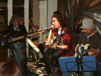 ▲「アモーレ下北」発売記念ライブ。オープニングはアコギ1本の弾き語りで数曲、中盤からはベース、ギター、パーカッションが入り、最後はサックスも加わった。次第に盛り上がってゆくいいライブだった。 |