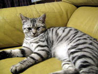 ソファーに横たわる姿態がなんとも色っぽい。なかなかイイ女になったでしょ?でもさー、だんだん「娘の成長を、うれしくも淋しい気分でみまもる」父親の心境になってくるんだよ。猫は人間の娘より成長が早いから、よけいにそう感じてしまうんだよな。