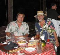 ▲那覇のゲストハウス、月光荘。こうやって、みんなで食事をしている。一番左が確か月光荘の主 |
