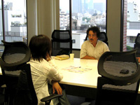 ▲なんとお互い上品だこと。これも豪華な会議室のせいだ。こういう所で話すと発想が変わるのが不思議 |