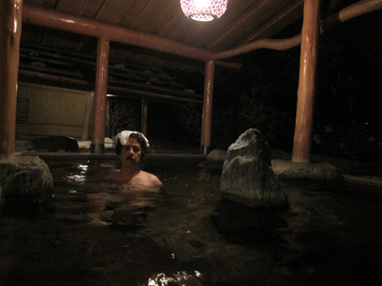 養老渓谷で、一人渓流の音を聞きながら深夜の露天風呂
