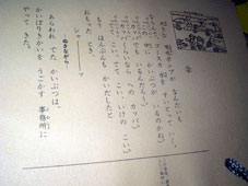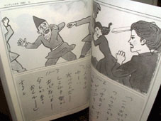 | 左は『アトム』の裏部分説明。右の「しらゆき」と比べてみると、スペースで抑揚を示していたりと語りの指示が詳しい。多くの場合、細かな指示はないという。 |