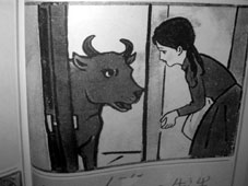 | 牛と少女。少々、犬っぽい牛である。こういうズレ具合の再現が難しいところ。 |