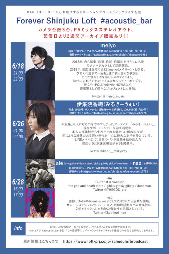 BAR THE LOFTからお届けするドネーションアコースティックライブ配信「Forever Shinjuku Loft #acoustic_bar」の配信が決定!
