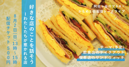 あたらしい東京下町さんぽ案内人として、2017年よりwebマガジン「かもめと街」を運営するチヒロと、高校生の頃から喫茶店やレトロな店に目がない、阿佐ヶ谷ロフトA店長・おくはらしおりが、東京の大好きな店について語る配信トークライブ!