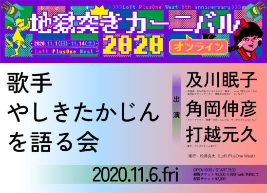 歌手として様々な名作を残してきたやしきたかじんの別テイク、演奏を含めて20年ぶりにremix再編集されたアルバム「TAKAJIN remix ALBUM vol.1」が10/5に発売されたこのタイミングで、これまで様々な角度からやしきたかじんを語るイベントを行ってきたロフトプラスワンウエストは今回、「歌手やしきたかじん」にスポットを当てたイベントを行います!