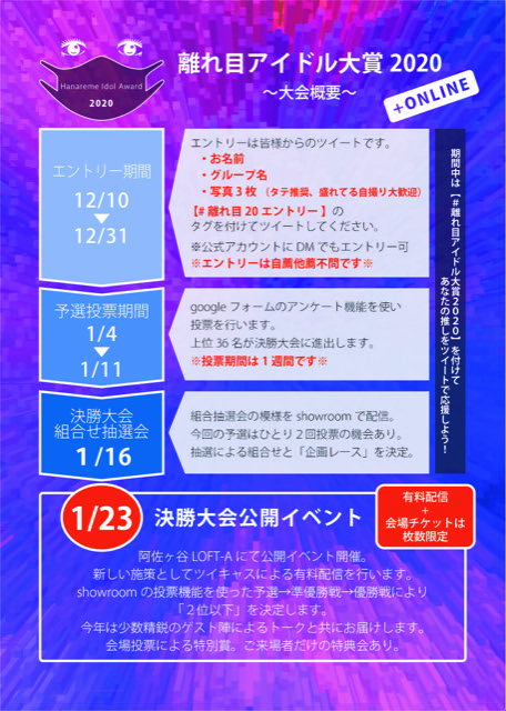 そして今回から導入する新しい方式による投票により2020年の ナンバーワン離れ目アイドルを決定します。