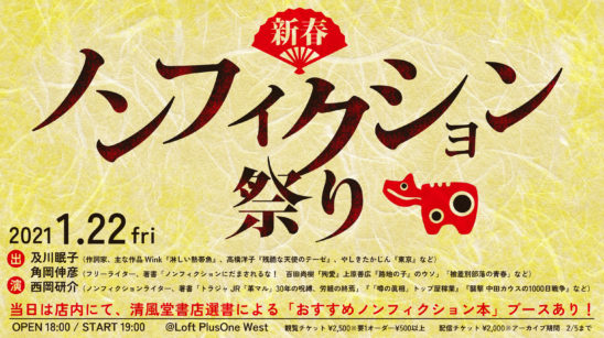 出版不況がまだまだ囁かれる昨今、それでも毎年良作を数多く生み出しているノンフィクションというジャンルに特化したトークイベントを開催決定!!