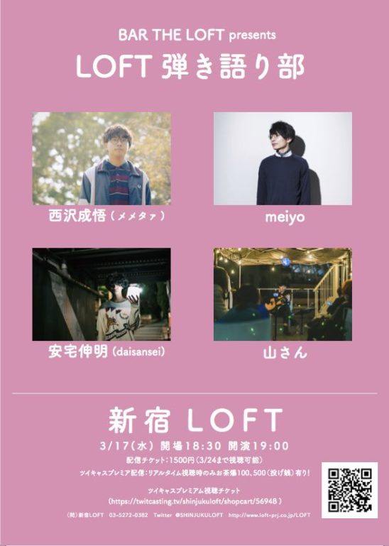 ※BAR THE LOFTにて新宿ロフト一押しのボーカリストやシンガーソングライターによる弾き語りを有観客ライブにて配信が決定!!