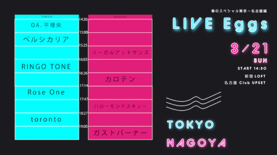 【LIVE Eggs~春のスペシャル東京編、開場開演時間変更のお知らせ】