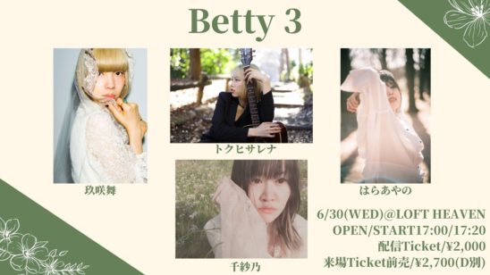良質な女性SSWが共演する配信ライブイベント「Betty」開催!