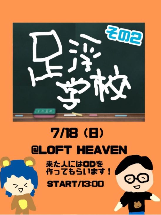 昨年7月4日に開催した、足浮梨ナコさんのCDを皆で作って、出来立てのCDに直接サインしてもらうという超DIYイベント“足浮学校”が久々の開校。今回も皆様ハサミご持参の上、ぜひCDをゲットしにいらしてください!!