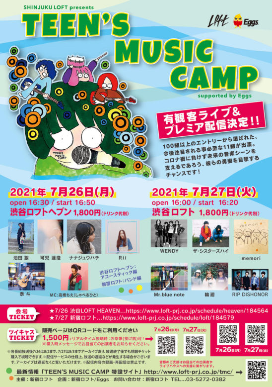 SHINJUKU LOFT presents 「TEEN’S MUSIC CAMP 」supported by Eggs