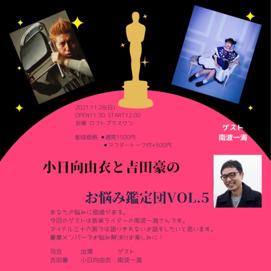 吉田豪さん南波一海さんからも一目置かれる“シンガーソングライター” レジェンドこと、小日向由衣さんが皆様からのお悩みを募集して、それを“進行兼カウンセラー”吉田豪さんと共に答えていくイベントだったのですが、いつのまにか小日向さんが豪さんにお悩みを相談をしているでおなじみ『小日向由衣と吉田豪のお悩み鑑定団』第5弾 開催決定!!