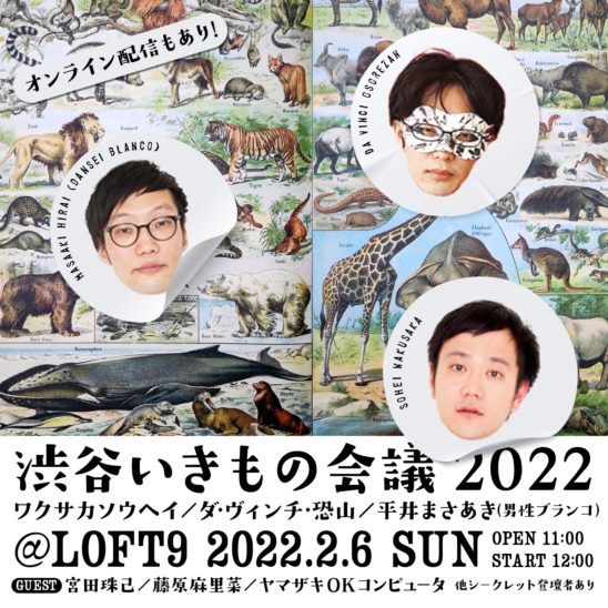 また2月6日(日)13:00ごろから、『渋谷いきもの会議2022』の代替えオンラインイベントを現在企画中です。また正式に決まり次第アナウンスをいたしますので、渋谷ロフト9のHPやtwitter@wakusakaをチェックいただければ幸いです。