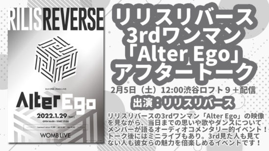 リリスリバースの3rdワンマン「Alter Ego」の映像を見ながら、当日までの思いや歌やダンスについてメンバーが語るオーディオコメンタリー的イベント!