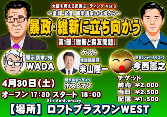4.30 大阪を考えよう『暴政・維新に立ち向かう~議員・記者・開示請求の立場から~』
