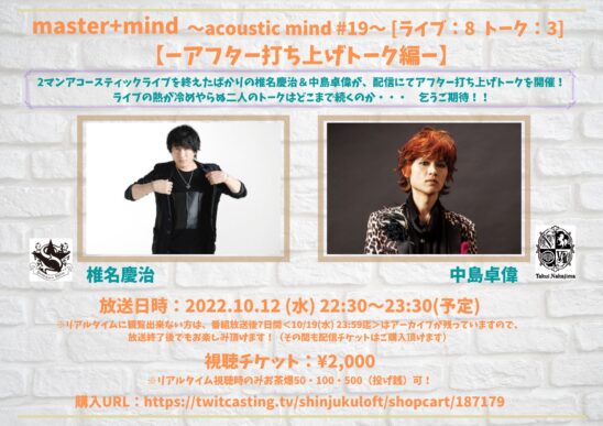 master+mind 〜acoustic mind #19〜 [ライブ:8 トーク:3]【ーアフター打ち上げトーク編ー】