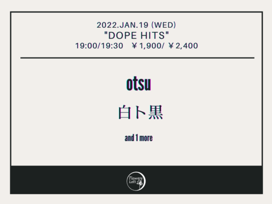 SCHEDULE 2022 01 19 Wednesday DOPE HITS OPEN 19:00 - START 19:30 Tweet 出演 otsu 白ト黒 moll TICKETADV/DOOR ¥1,900 / ¥2,400 (1D別 ¥600) TICKET 各アーティスト予約または以下より Share このイベントの予約は締めきりました。