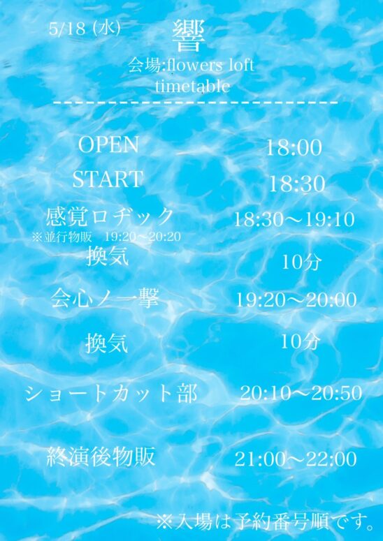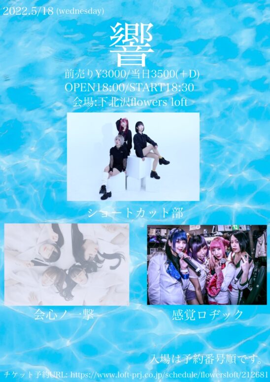 SCHEDULE 2022 05 18 Wednesday 響 OPEN 18:00 - START 18:30 Tweet 出演: 感覚ロヂック 会心ノ一撃 ショートカット部 TICKET前売り¥3000/当日¥3500(+D) 予約開始は4/25(月) 18:00〜以下予約フォームより Share このイベントの予約は締めきりました。