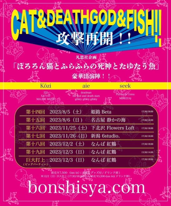 出演:Közi(ZIZ/XA-VAT/MALICE MIZER)、 aie(deadman/the god and death stars/gibkiy gibkiy gibkiy)、seek(Psycho le Cemu/MIMIZUQ)