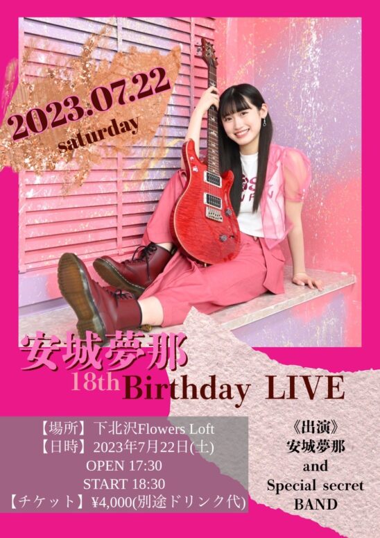 SCHEDULE 2023 07 22 Saturday 〜安城夢那 18th Birthday Live〜 OPEN 17:30 - START 18:30 Tweet 【出演】 安城夢那/Special secret BAND TICKET【チケット】 THANK YOU SOLD OUT!! ¥4,000[+1drink] ■購入ページURLhttps://eplus.jp/sf/detail/3896160001-P0030001 整理番号順入場 当日券の発売はございません Share