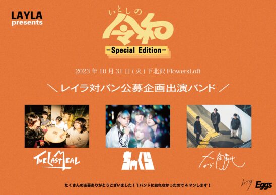 10月31日(金)下北沢FlowerLoftにて行われる『いとしの令和-Special edition-』の対バン募集企画!