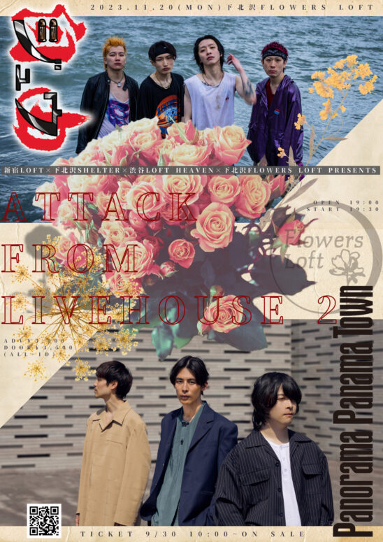 SCHEDULE 2023 11 20 Monday 新宿LOFT×下北沢SHELTER×渋谷LOFT HEAVEN×下北沢FLOWERS LOFT PRESENTS 『ATTACK FROM LIVEHOUSE 2』 OPEN 19:00 - START 19:30 Tweet ジュウ Panorama Panama Town TICKETADV ¥3,000 / DOOR ¥3,500(+1D¥600) 【TICKET】 Livepocket(9/30 10:00~) 【入場順】 Livepocket(No,1〜) Share